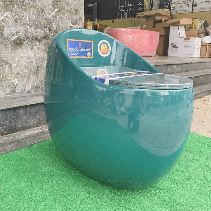 - Bồn cầu 1 khối màu xanh ngọc lục bảo sang trọng.
