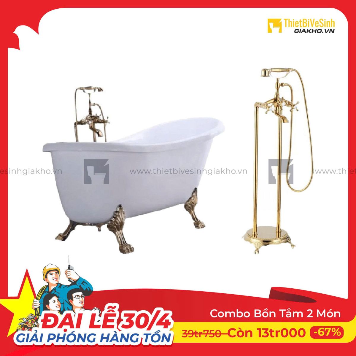 Combo Bồn Tắm Chân Rồng Kèm Sen Cây Đặt Sàn Cao Cấp Navier CBBT04