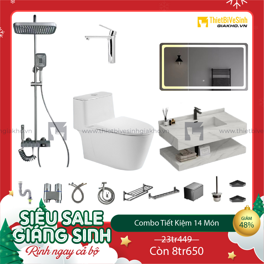 - Tiết kiệm không gian và chi phí: Thiết kế nhỏ gọn, tối ưu cho phòng tắm, dễ dàng lắp đặt. Combo giúp bạn mua sắm nhanh chóng với mức chi phí tiết kiệm hơn so với mua lẻ từng món.