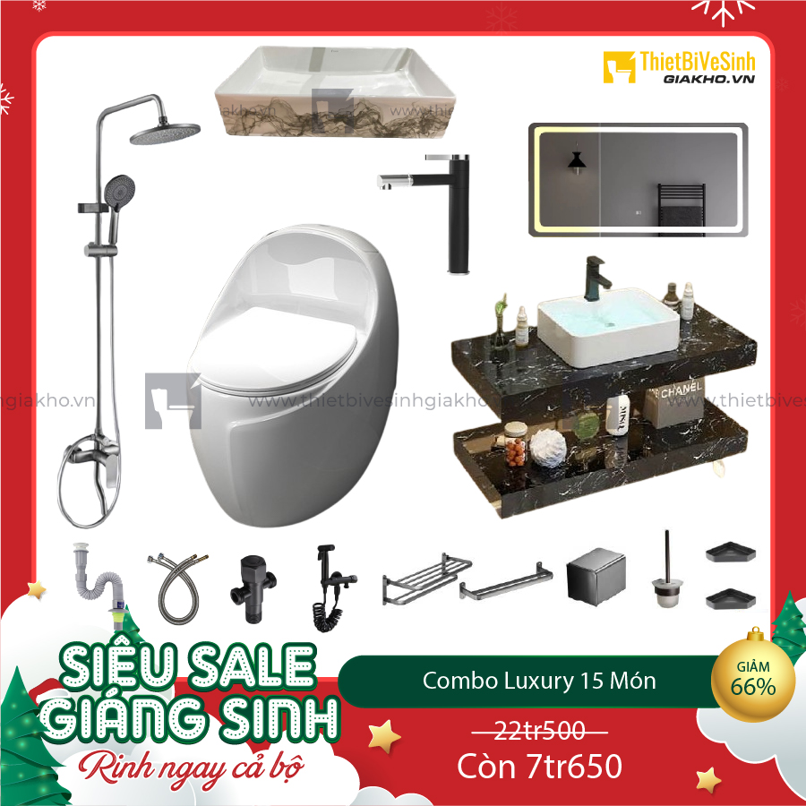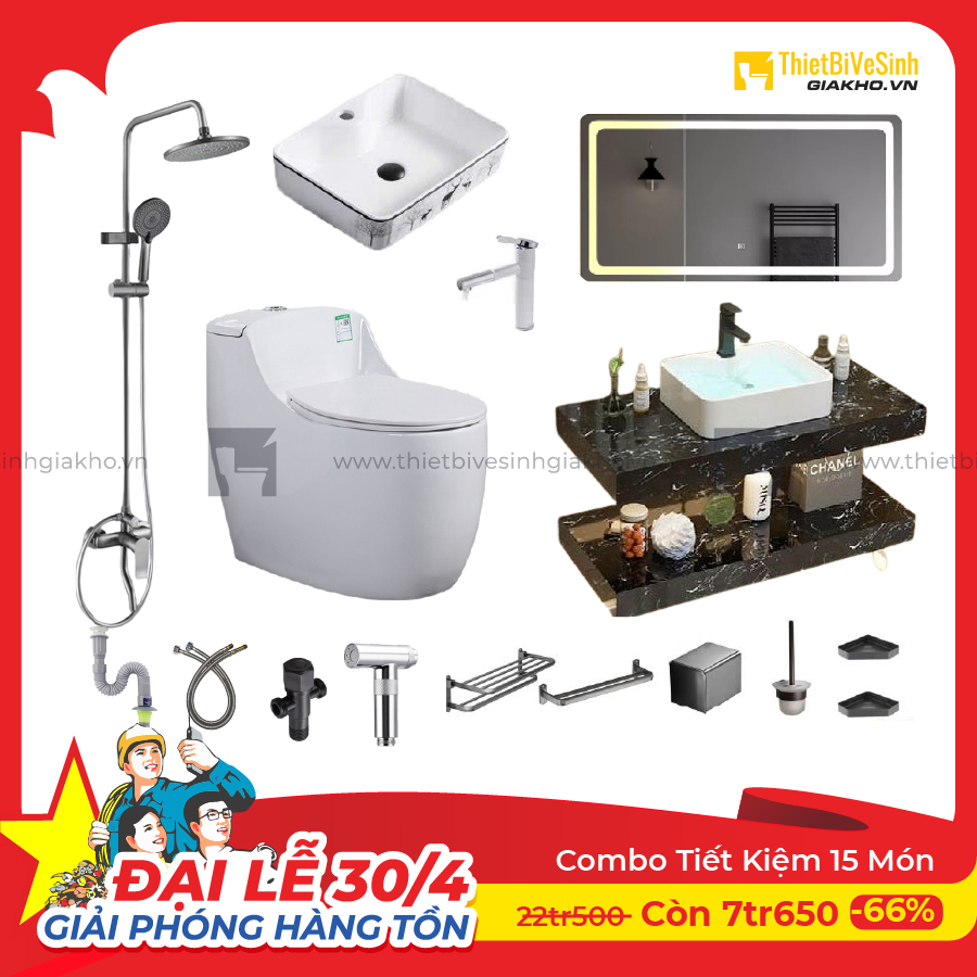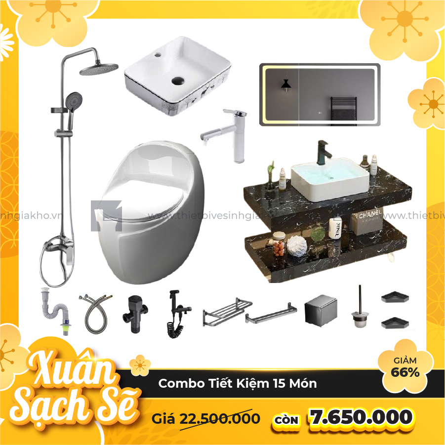 Hãy lựa chọn Combo Trọn Bộ Thiết Bị Phòng Tắm 15 Món CBPT0023 để biến không gian phòng tắm của bạn thành một nơi thư giãn lý tưởng, nơi mà mọi chi tiết đều được chăm chút tỉ mỉ, đáp ứng mọi nhu cầu của gia đình bạn.