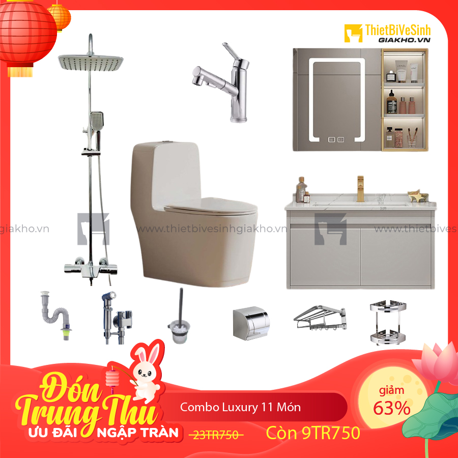 Tất cả sản phẩm trong combo đều sử dụng các chất liệu như sứ phủ men nano, inox 304, đồng mạ chrome, đảm bảo khả năng chống bám bẩn, chống gỉ, và giữ được vẻ sáng bóng lâu dài.