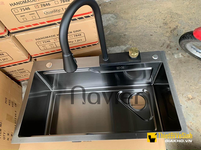 Chậu rửa chén 1 hộc Navier NV-7546DAT2 là sản phẩm cao cấp với thiết kế sang trọng, mang lại trải nghiệm tiện lợi và đẳng cấp cho gian bếp. Chất liệu inox 304 phủ nano đen giúp chống trầy xước, kháng khuẩn, đồng thời tăng độ bền và tính thẩm mỹ.