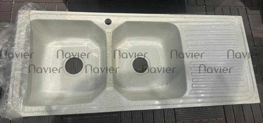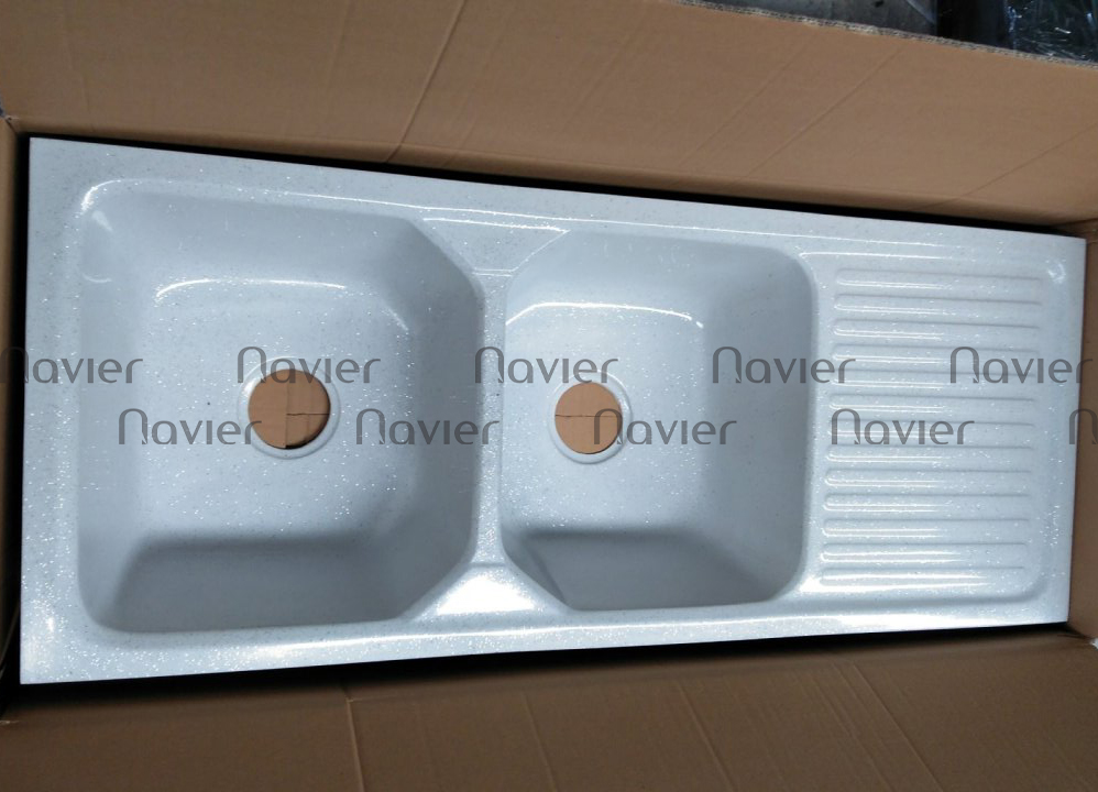 Siêu Sale Thanh Lý Chậu Rửa Chén Đá 2 Ngăn Có Cánh Trắng Navier NV-115547