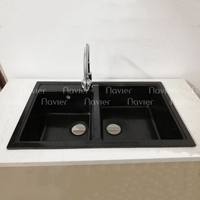Siêu Sale Thanh Lý Chậu rửa chén đá nhân tạo 2 hộc lệch đen Navier NV-8548LD