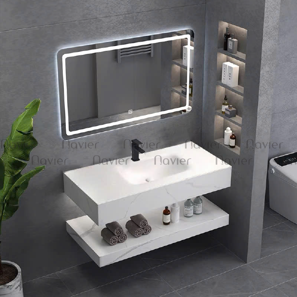 Bàn Đá Bóng Chống Trầy 2 Tầng Tràn Viền Mặt Lavabo Full Sứ Navier NV-2000 không chỉ được đánh giá cao về chất lượng mà còn được đánh giá cao về phong cách thẩm mỹ, chắc chắn sẽ làm nổi bật nên không gian nhà tắm của khách hàng.