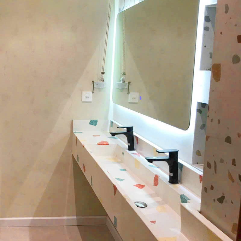 - Bàn được làm từ chất liệu đá mài cao cấp, bề mặt được mài nhẵn, mịn độ thẩm thấu nước cực thấp & chịu lực va đập tốt.