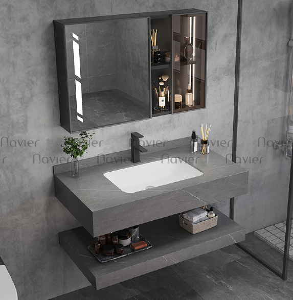 Bộ sản phẩm Bộ Bàn Đá Lavabo Âm Xám Vân Mây Navier NV-CB1134X này là sự kết hợp hoàn hảo giữa chậu lavabo âm bàn và bàn đá lavabo, vừa đẹp mắt, hài hòa lại tiết kiệm không gian sử dụng.