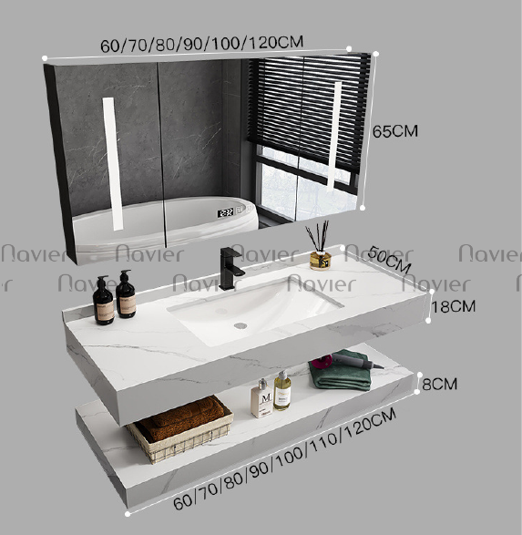 Bộ Bàn Đá Lavabo Âm Bàn Chống Trầy Navier NV-CB1134T được biết tới là một bộ sản phẩm hoàn hảo dành cho mọi gia đình, sản phẩm này có đầy đủ bàn đá lavabo, chậu lavabo âm bàn và gương. Bộ sản phẩm được thiết kế đồng bộ với nhau từ màu sắc trắng vân mây đẹp mắt cho đến kích thước vừa phải, phong cách thẩm mỹ để giúp căn phòng tắm nhà bạn trở nên nổi bật hơn.