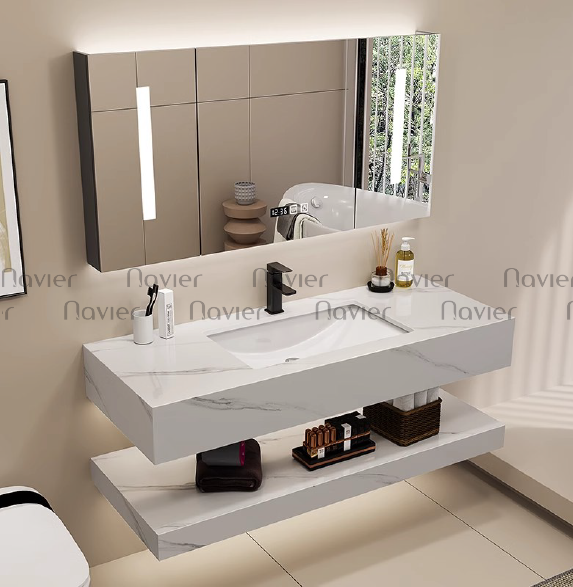 - Bàn lavabo với thiết kế 2 tầng giúp bạn để được nhiều đồ dùng cá nhân hơn, tiết kiệm không gian sử dụng.