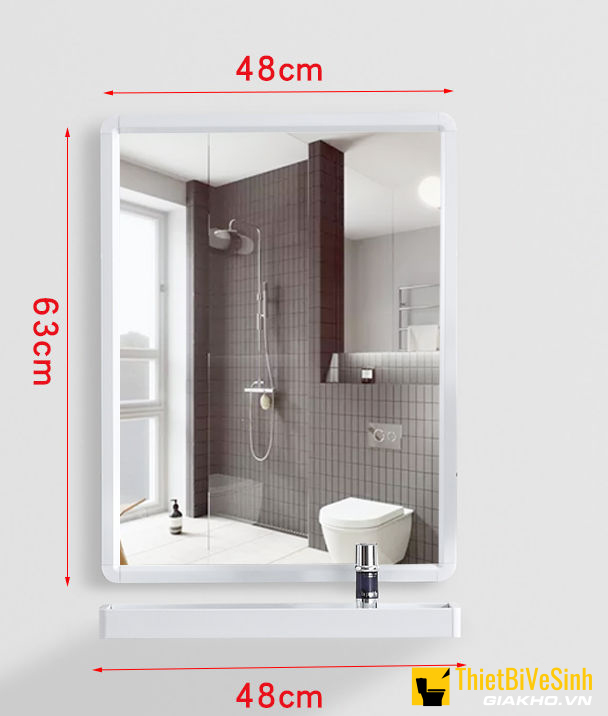 Bộ gương phòng tắm hình chữ nhật + kệ gương màu trắng 48x63 NP-K4863B