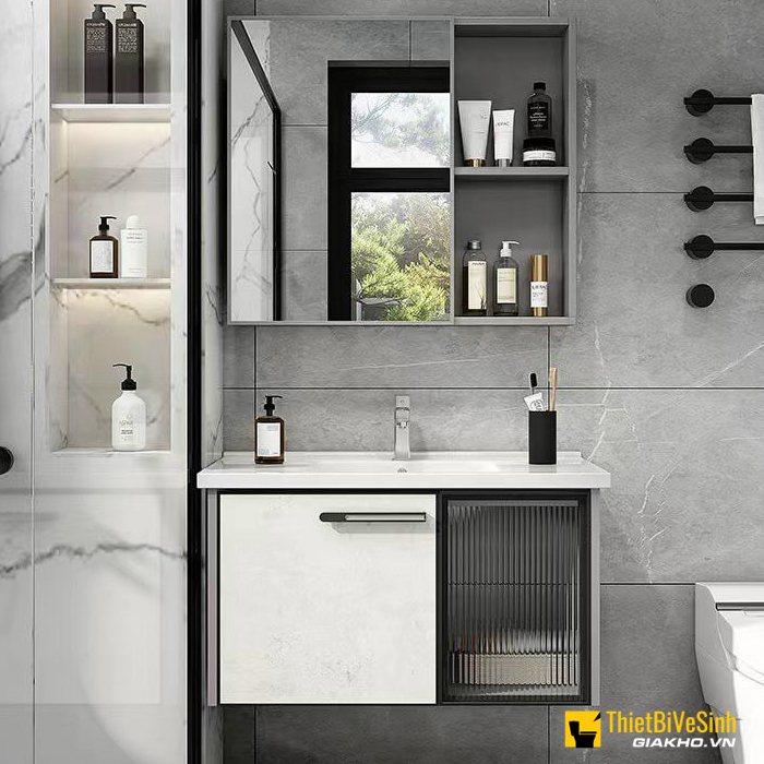- Tiết kiệm không gian: Thiết kế thông minh với tủ gương đi kèm giúp tối ưu hóa không gian lưu trữ, giữ cho phòng tắm luôn gọn gàng.