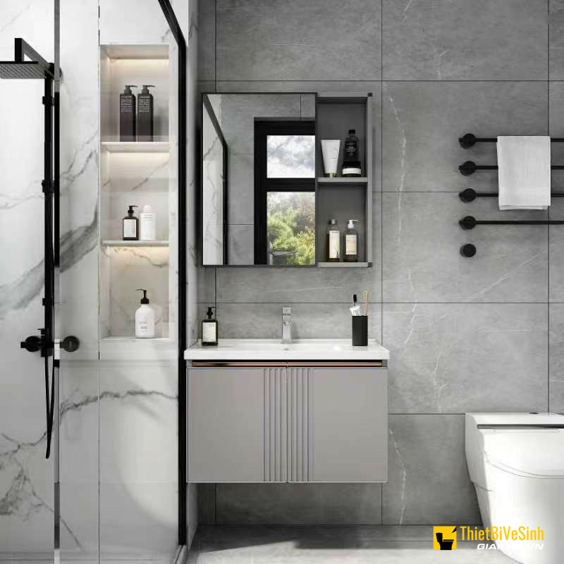 - Tiện dụng: Thiết kế tích hợp giữa tủ gương và tủ lavabo giúp tăng thêm không gian lưu trữ, giữ đồ dùng khô ráo và sạch sẽ.