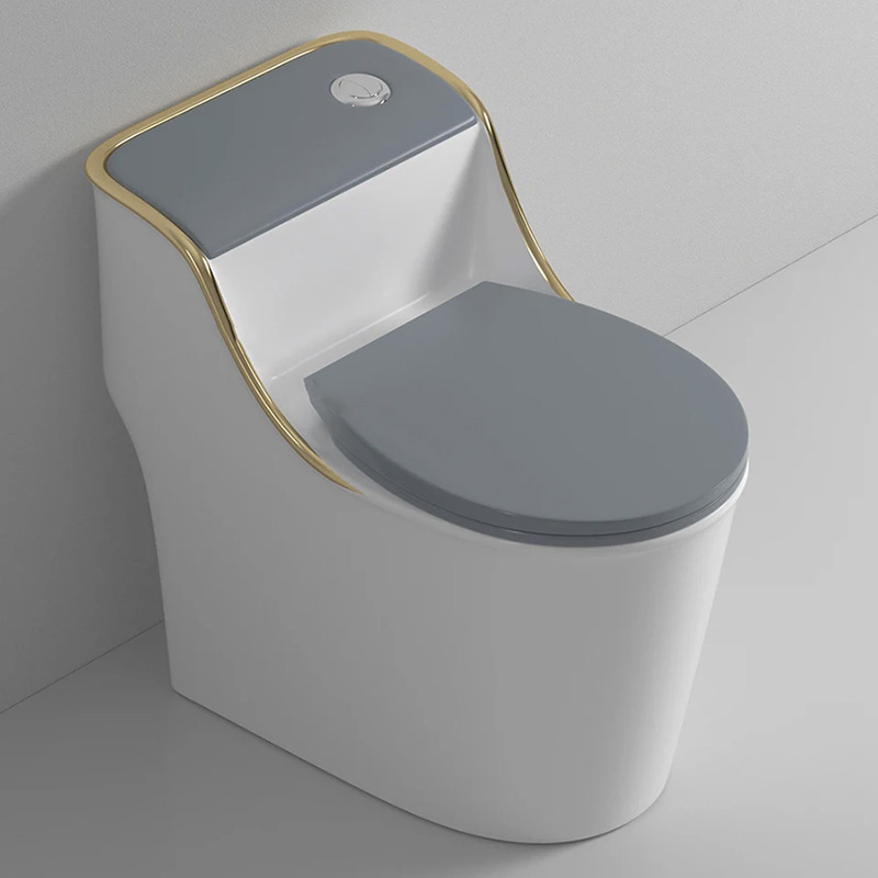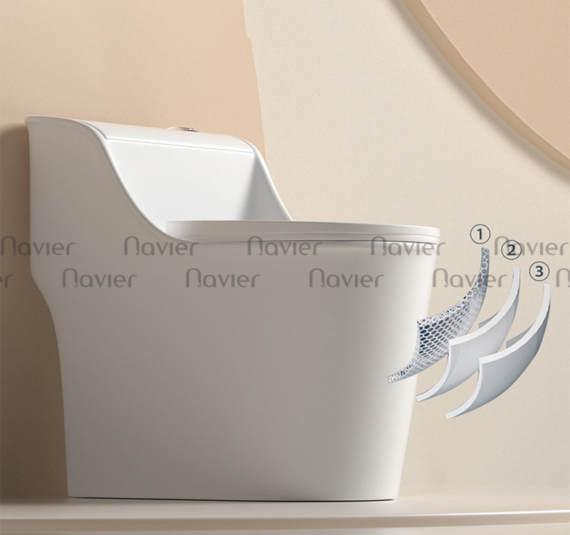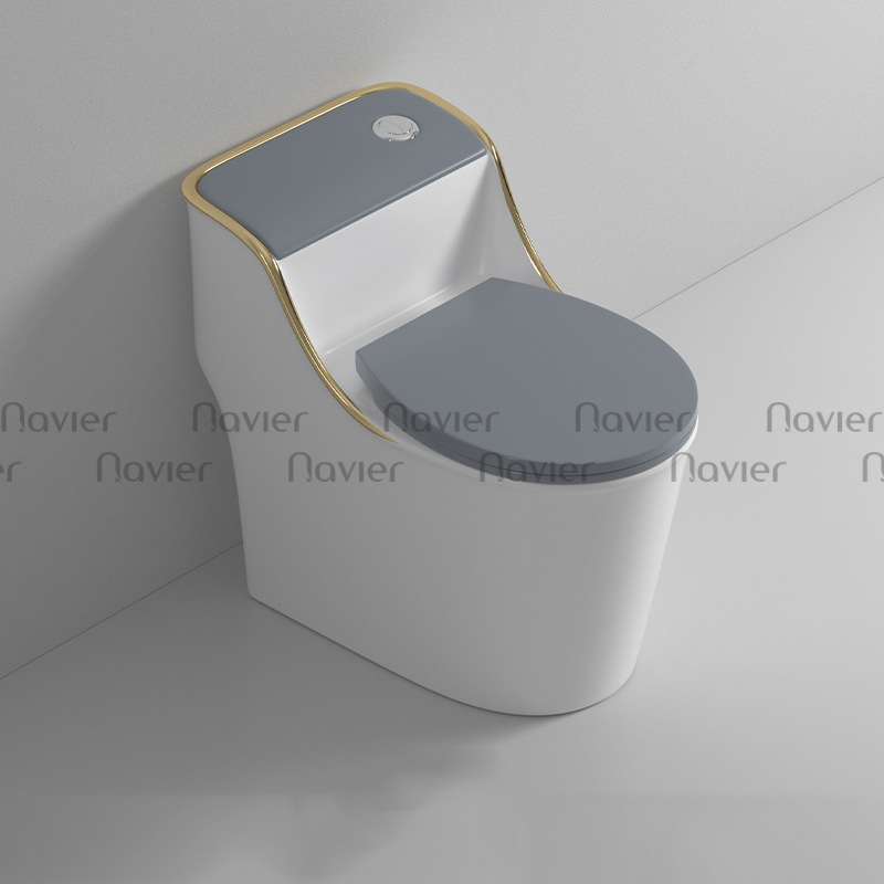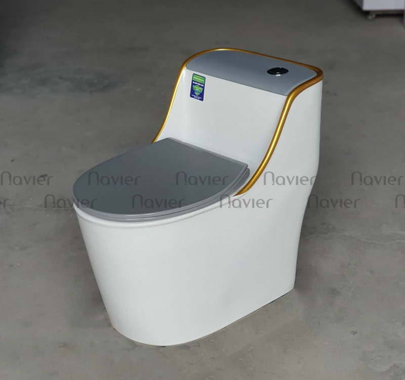 Bàn cầu 1 khối NV-1013TX được thiết kế liền khối, kiểu dáng đơn giản với 2 màu trắng xám kế hợp cùng điểm nhấn viền vàng giúp tăng thêm vẻ đẹp cho không gian phòng tắm. Sản phẩm bồn cầu giá rẻ NV-1013TX được sản xuất từ chất liệu sứ cao cấp phủ men Nano cho bề mặt sáng bóng, kháng khuẩn, không bám bẩn, dễ dàng vệ sinh lau chùi mà không tốn nhiều thời gian và công sức. Hệ thống nắp rơi êm hạn chế gây ra tiếng ồn do va chạm, không gây giật mình cho mọi người đặc biệt là vào ban đêm, ngoài ra còn tăng tuổi thọ cho sản phẩm.