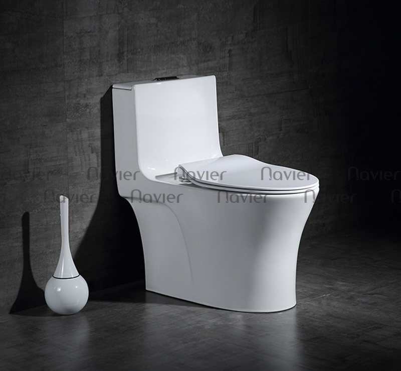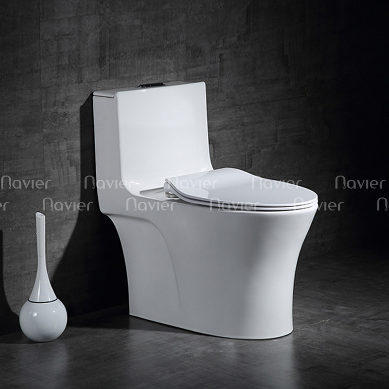 Bồn cầu 1 khối Navier NV-910 là loại có két nước xả liền với bàn cầu, dùng hệ thống xả xi phông có đế thải hay còn gọi là con thỏ, xả rất sạch, êm & tiết kiệm nước. Vì là 1 thể thống nhất không có nhiều khe hở nên dễ dàng vệ sinh & thay thế các phụ kiện khi cần hơn nữa bàn cầu 1 khối to, rộng nên khi sử dụng rất tiện & thoải mái – so với bàn cầu 2 khối truyền thống thì bàn cầu 1 khối sẽ là sự chọn sáng suốt nếu phòng tắm có diện tích rộng.