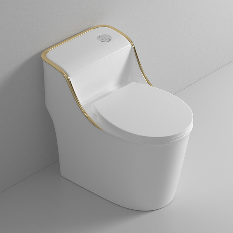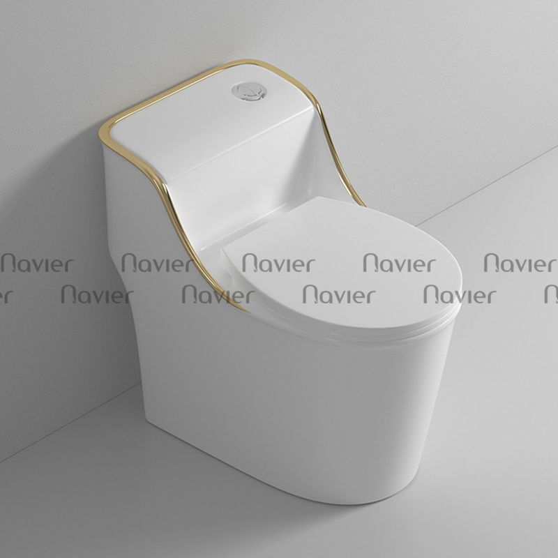 Bồn Cầu 1 Khối Trắng Viền Vàng Nút Lệch Navier NV-1013T