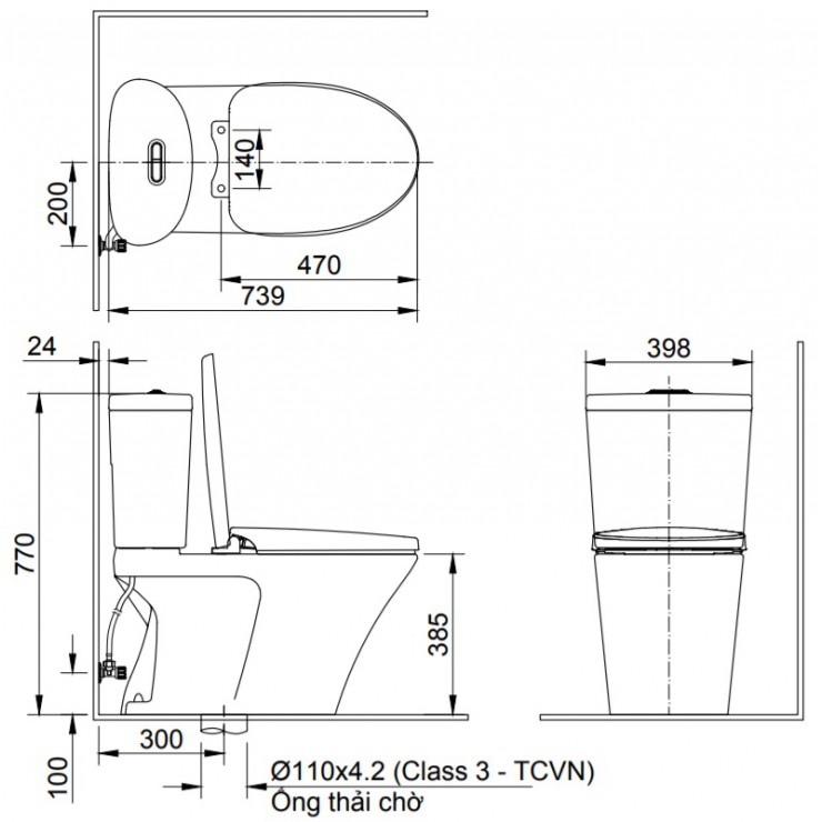 - Có thể kết hợp với nắp điện tử, nắp rửa cơ