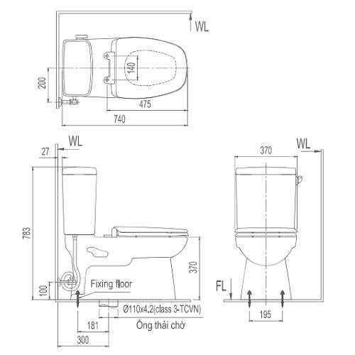 - Chế độ xả 2 nhấn: 5,5 lít cho xả đại và 3 lít cho xả tiểu.