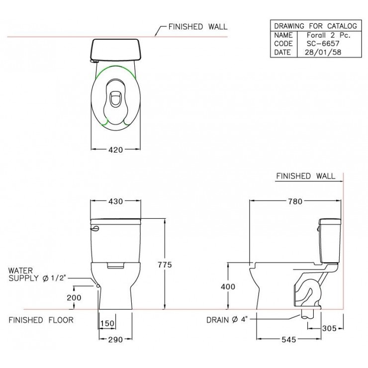 • Tên sản phẩm: Bàn cầu 02 khối Forall 40, kèm nắp C9251