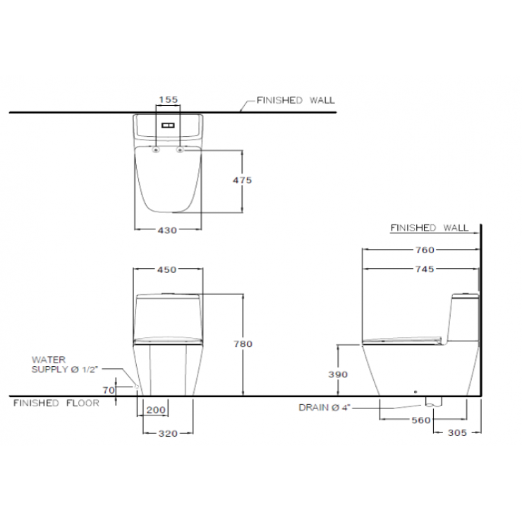 • Kích thước (R x D x C): 450 x 745 x 780 mm