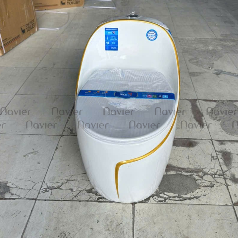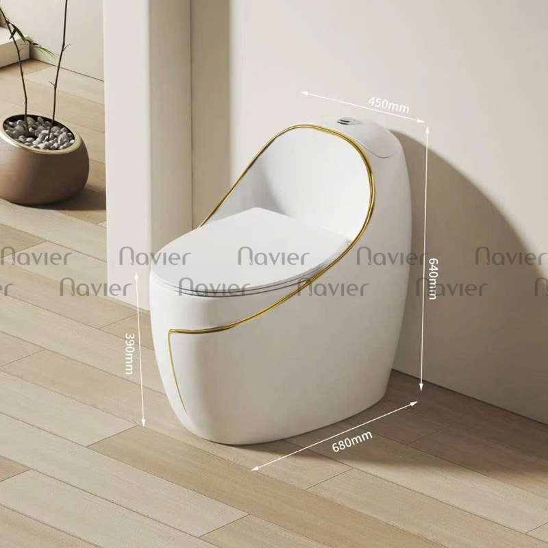 - Tên sản phẩm: Bồn Cầu Khối Trứng Trắng Viền Vàng Cao Cấp Navier NV-1093VV