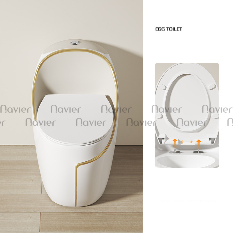 Bồn Cầu Khối Trứng Trắng Viền Vàng Cao Cấp Navier NV-1093VV không chỉ là một thiết bị vệ sinh, mà còn là một tác phẩm nghệ thuật nâng tầm đẳng cấp phòng tắm của bạn. Với thiết kế tinh xảo, công năng tối ưu và độ bền vượt trội, đây chính là lựa chọn lý tưởng dành cho những ai yêu thích vẻ đẹp sang trọng, tinh tế và hiện đại.