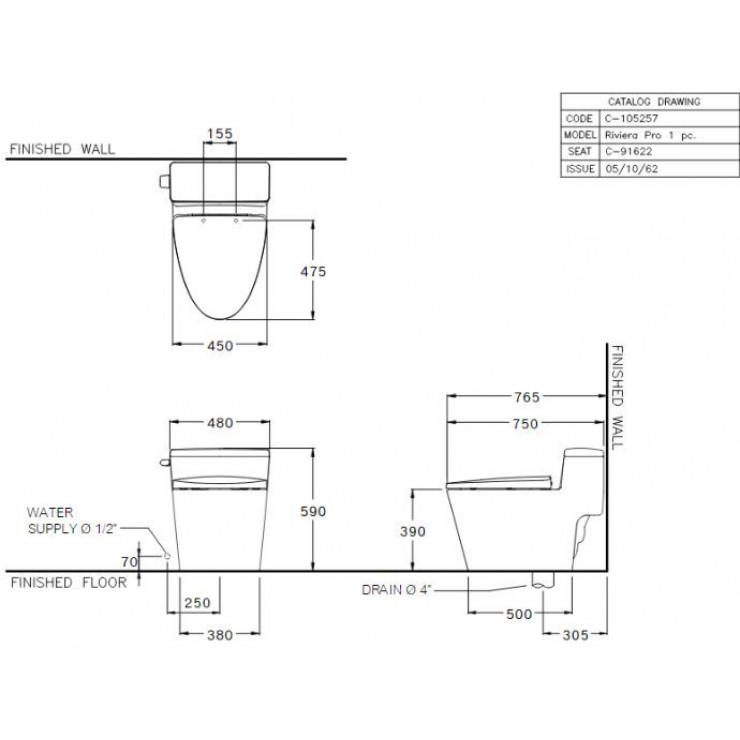 • Bàn cầu 1 khối nắp đóng êm Riviera Pro