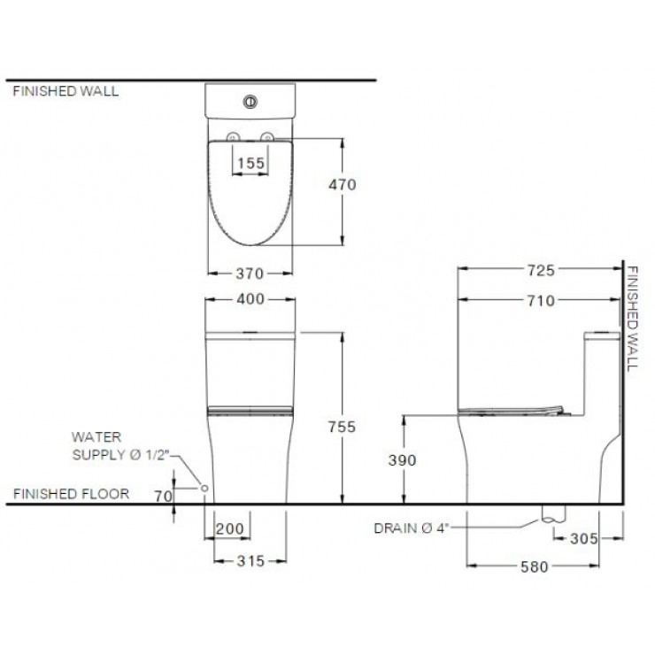 • Thiết kế: Thân dài, thoát thẳng, tâm xả 305mm C