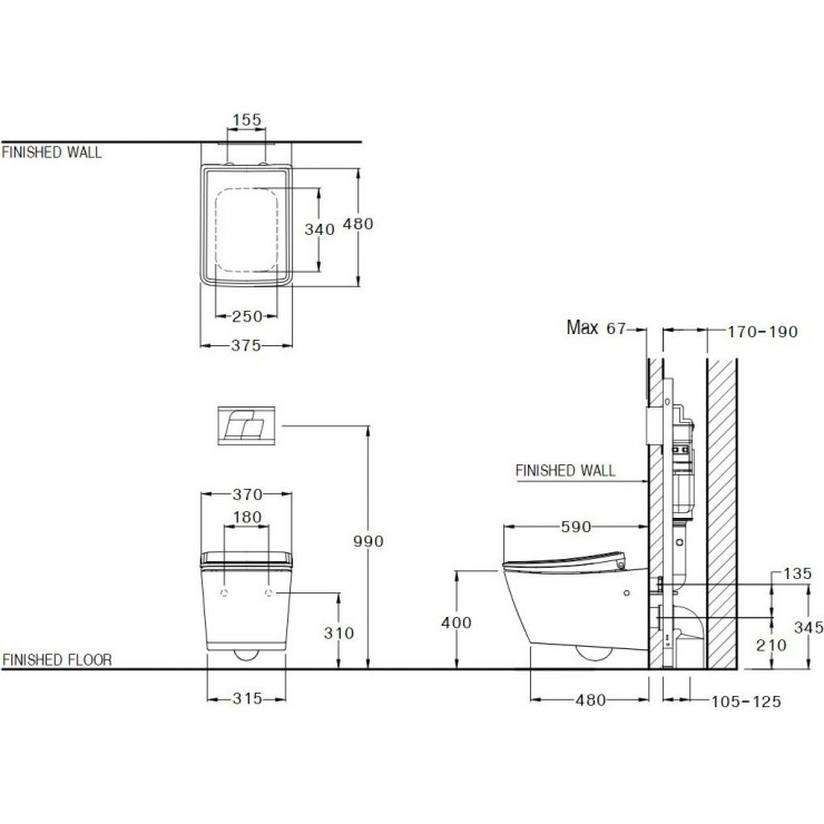 • Áp lực nước: 0.05 MPa ~ 0.75 MPa