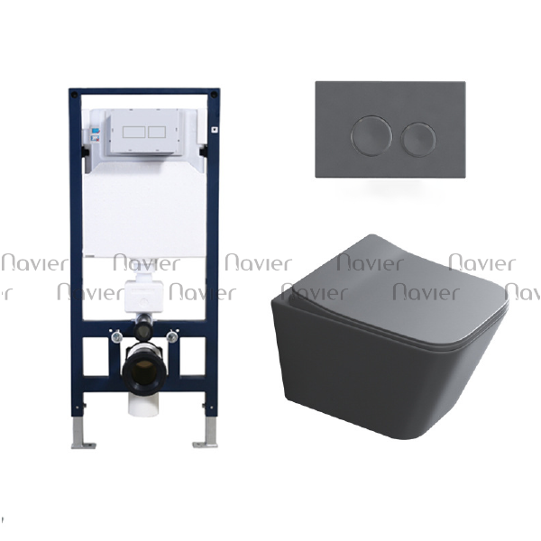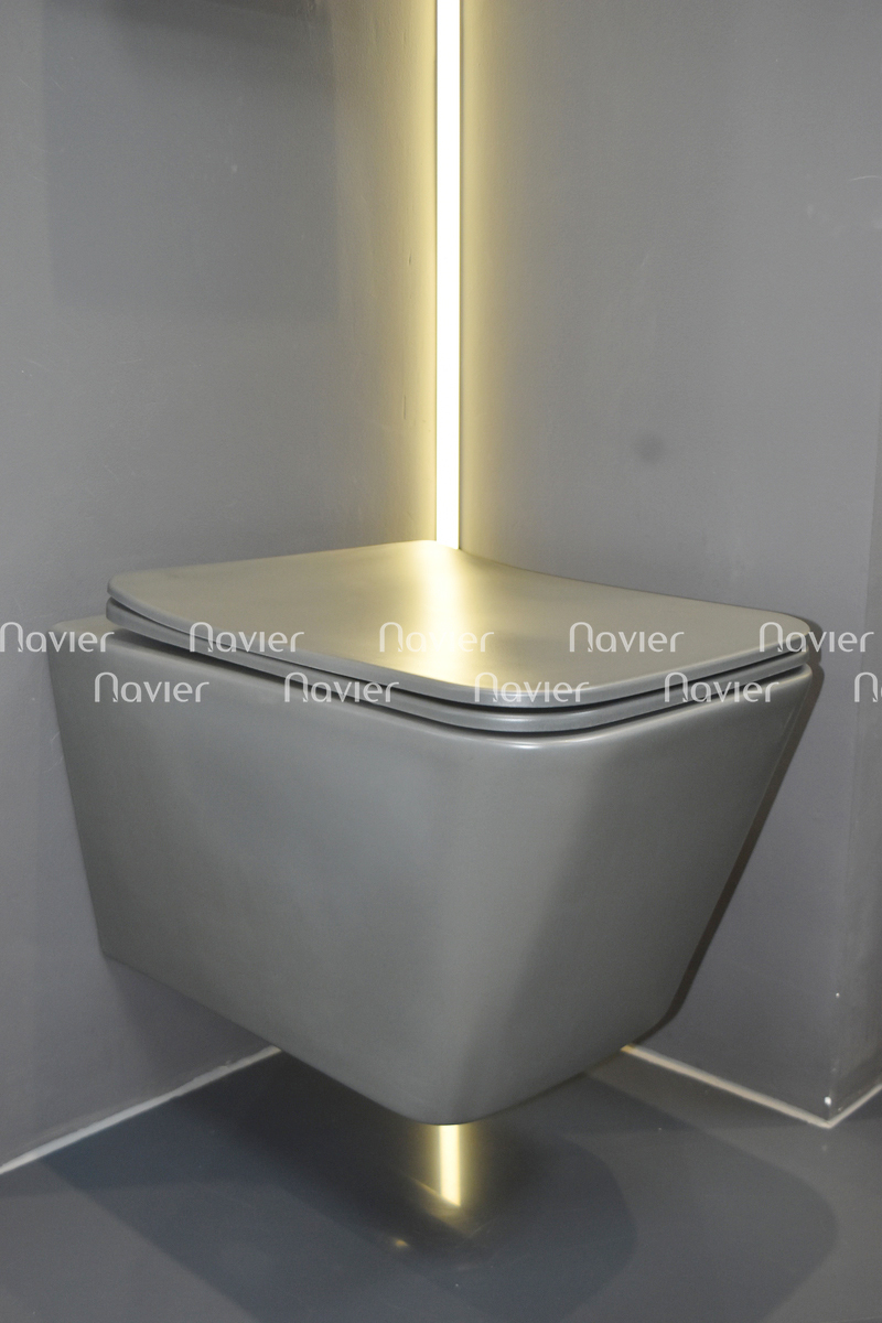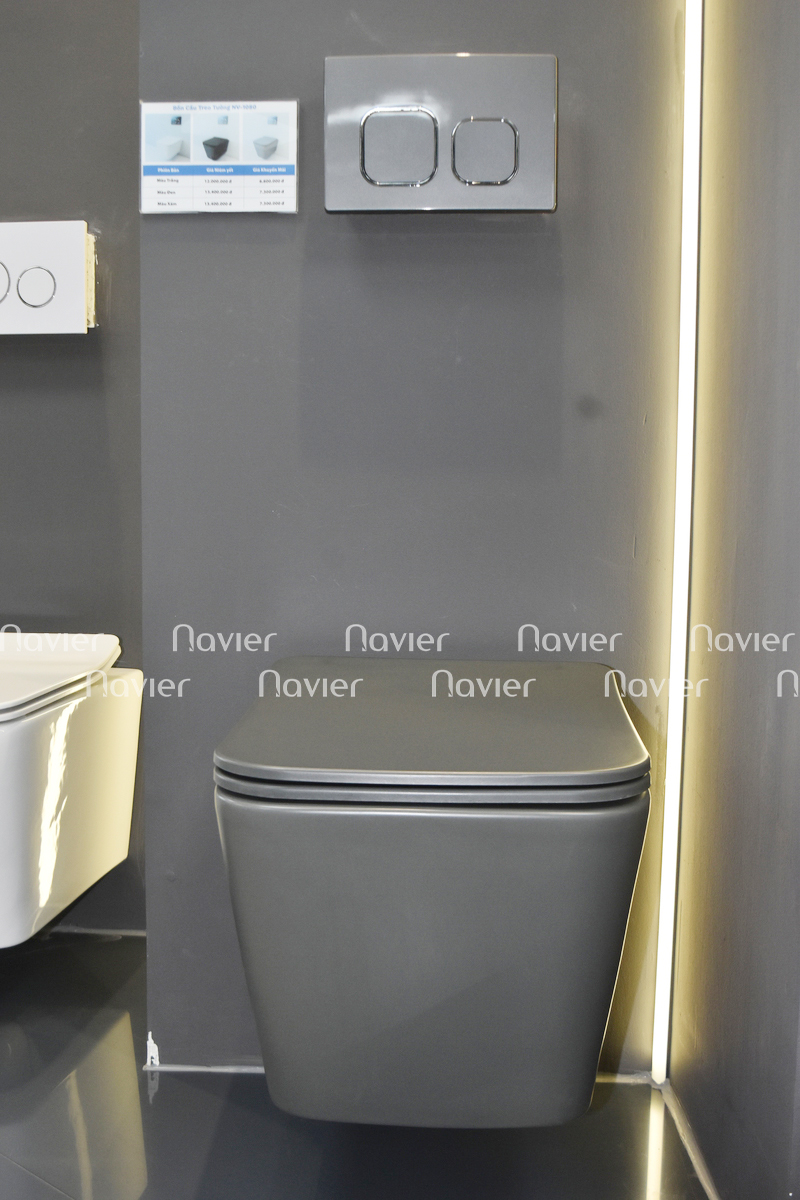 Bồn Cầu Treo Tường Khối Vuông Màu Xám Navier NV-1080X