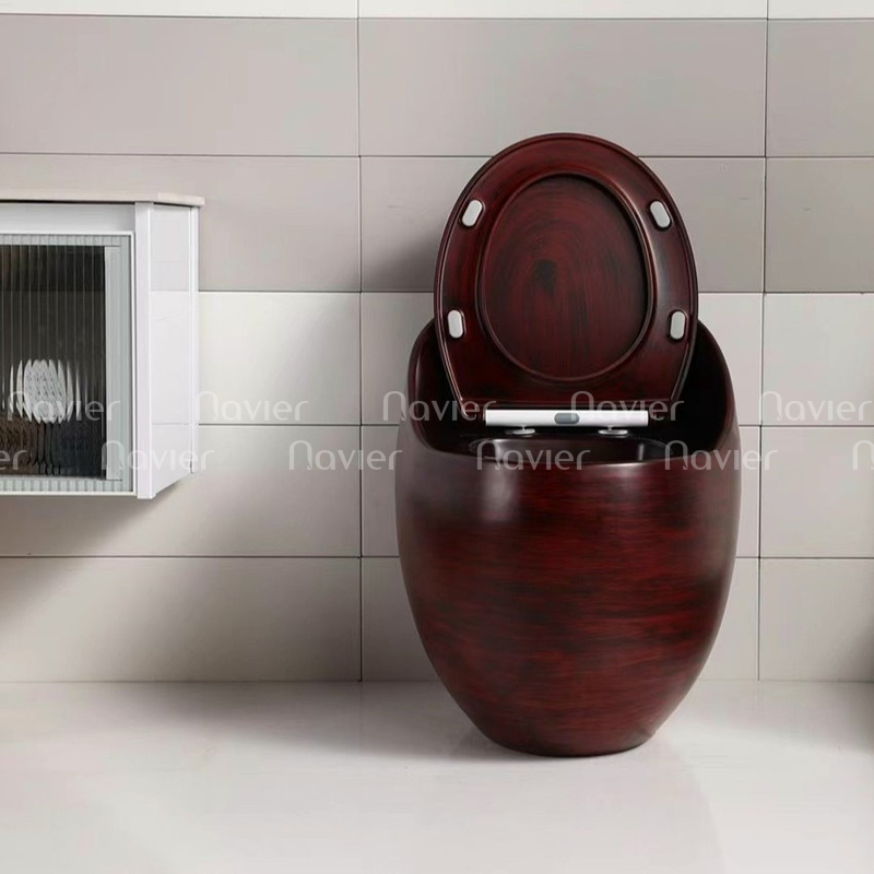 Bồn Cầu Trứng Men Giả Gỗ Đỏ Navier NV-1005GD Cao Cấp