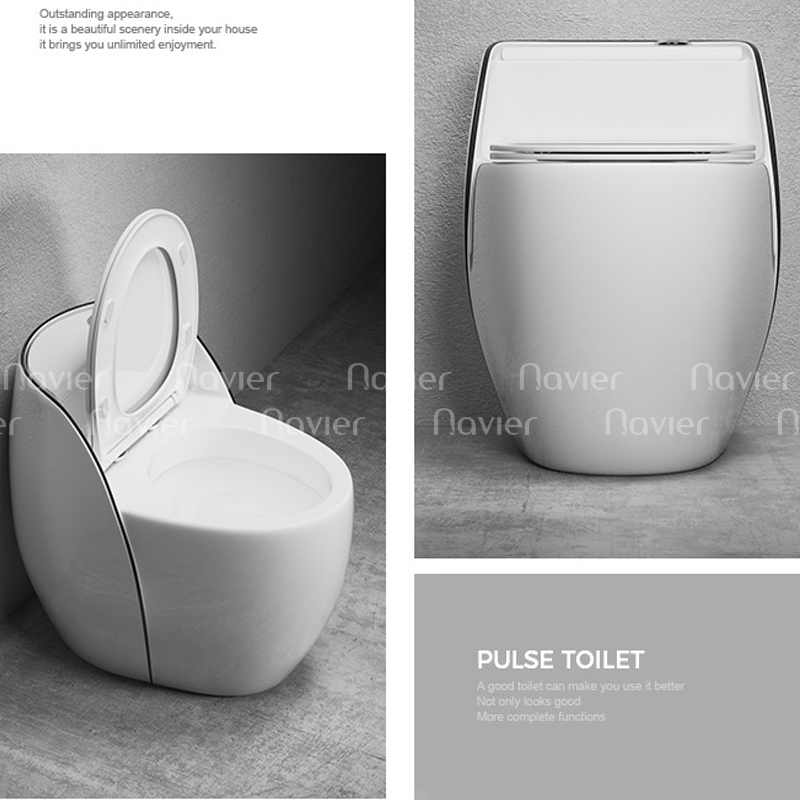 Hiện tại bồn cầu vệ sinh hình trứng này còn được xem là một trong những dòng sản phẩm nổi bật nhất trên thị trường, là một trong những sản phẩm bồn cầu vệ sinh có nhiều những điểm nổi bật đáp ứng nhu cầu sử dụng của khách hàng. Bồn cầu trứng trắng viền đen nút xả lệch Navier NV-1034 hiện có một số ưu điểm sau: