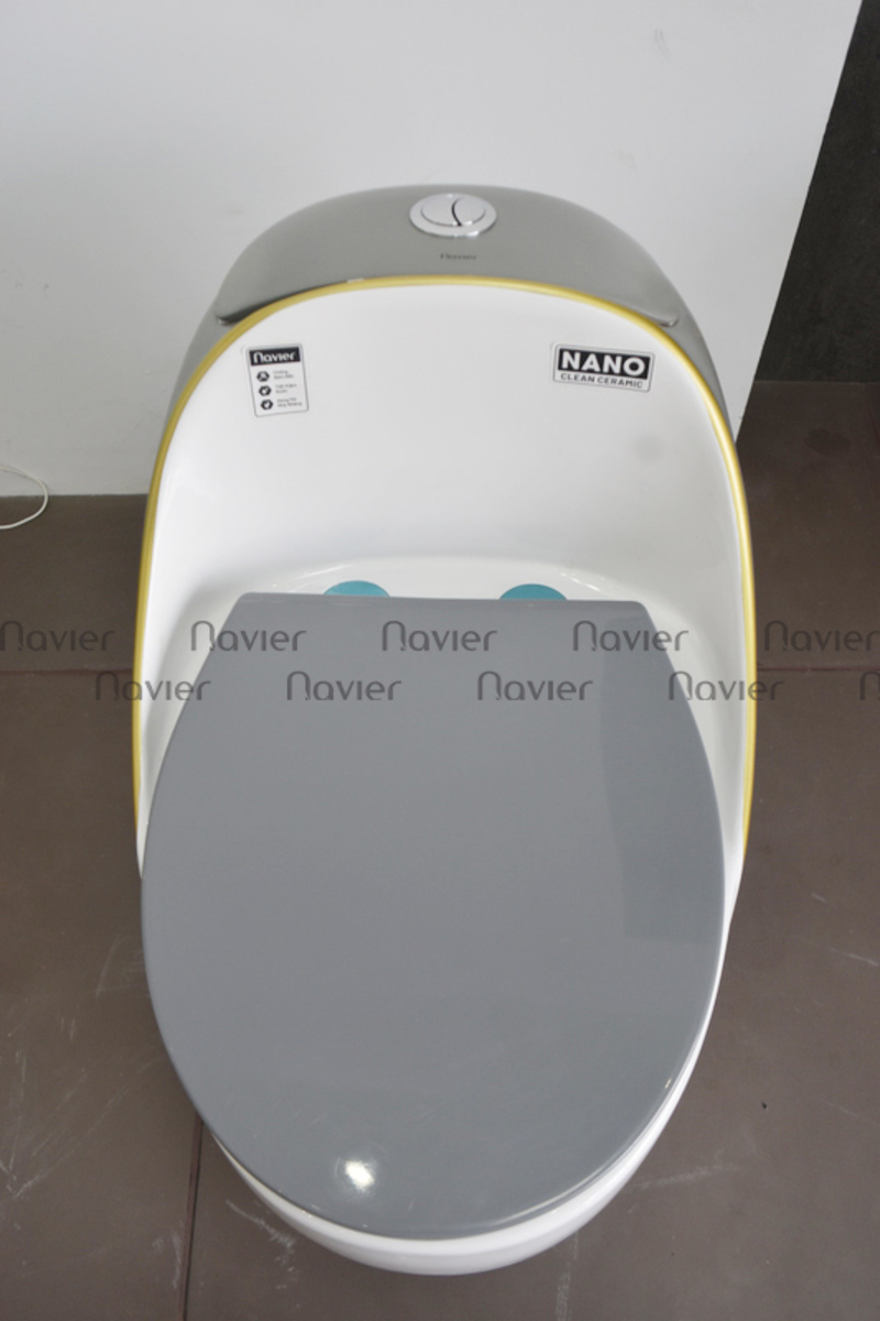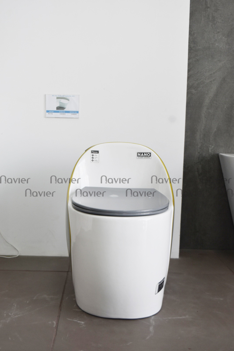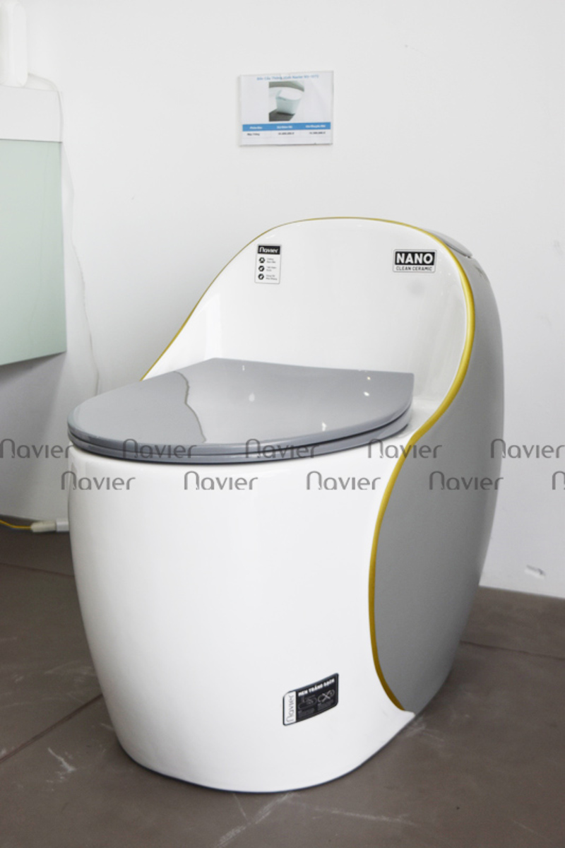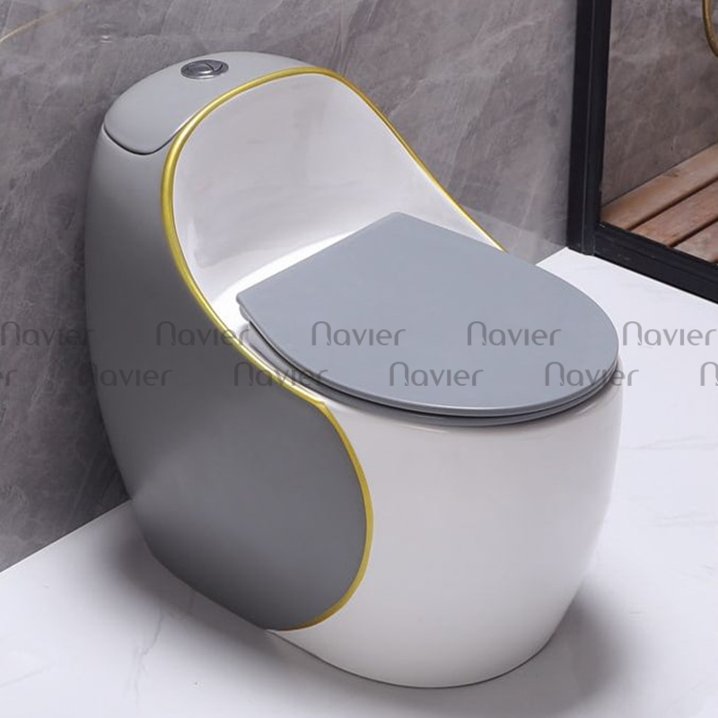Bồn Cầu Trứng Trắng Xám Viền Vàng Cao Cấp Navier NV-1035TX