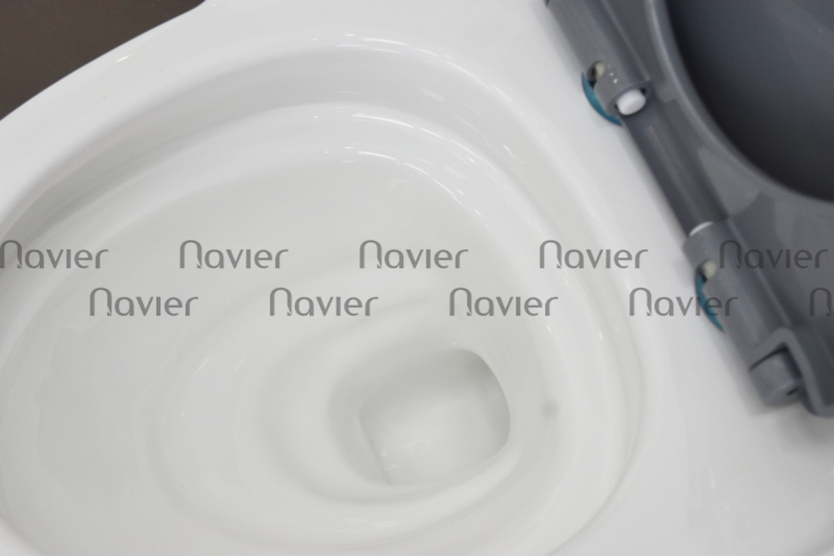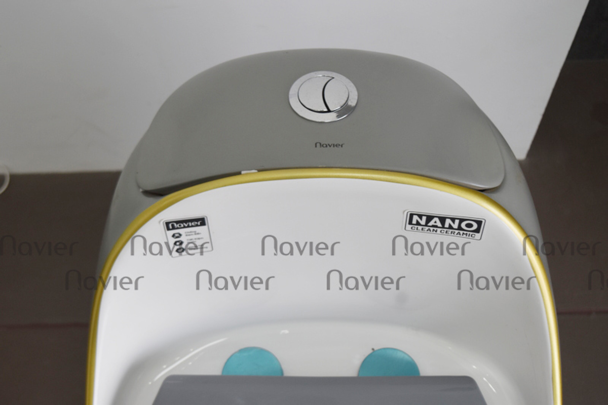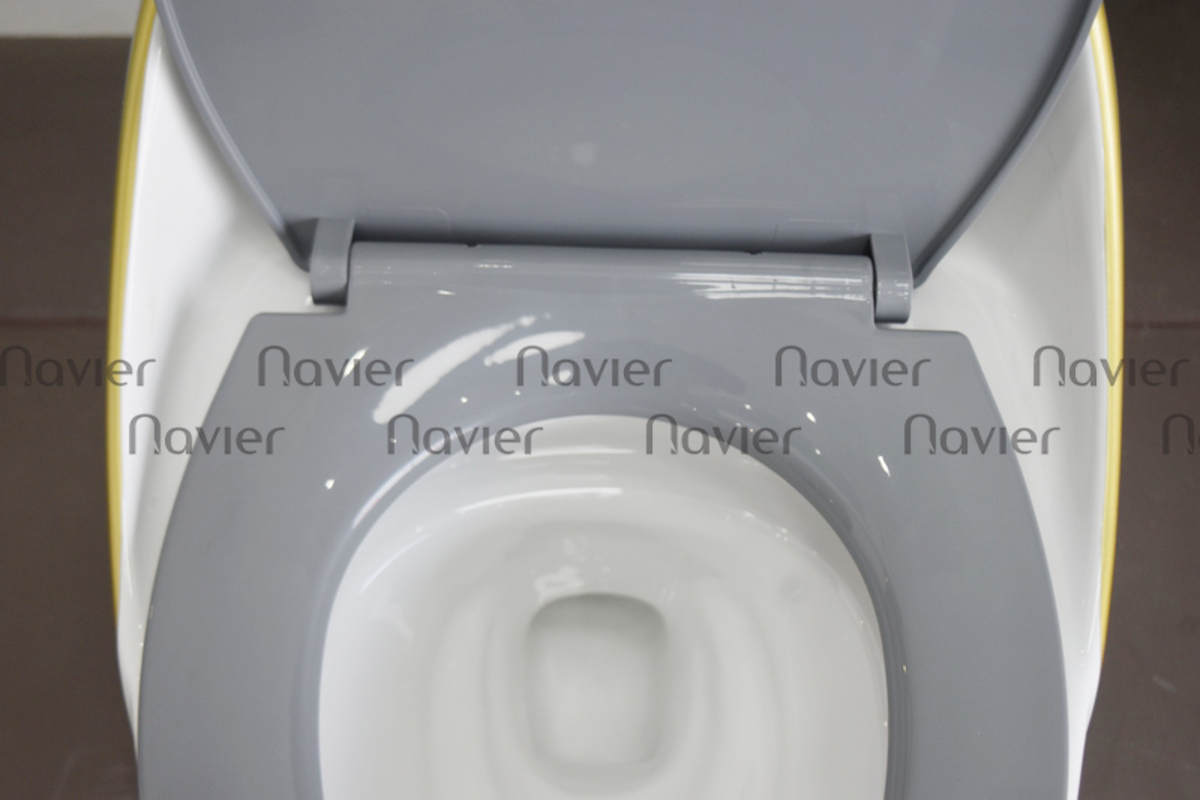 Bồn Cầu Trứng Trắng Xám Viền Vàng Cao Cấp Navier NV-1035TX