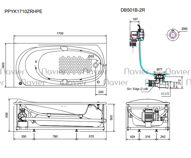 Bồn Tắm Nằm Chữ Nhật Màu Trắng Cao Cấp Navier NV-1514
