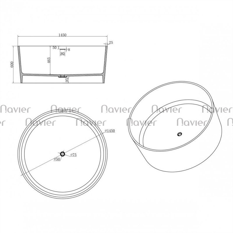 Bồn Tắm Đá Solid Surface Cao Cấp Navier NVB-6804