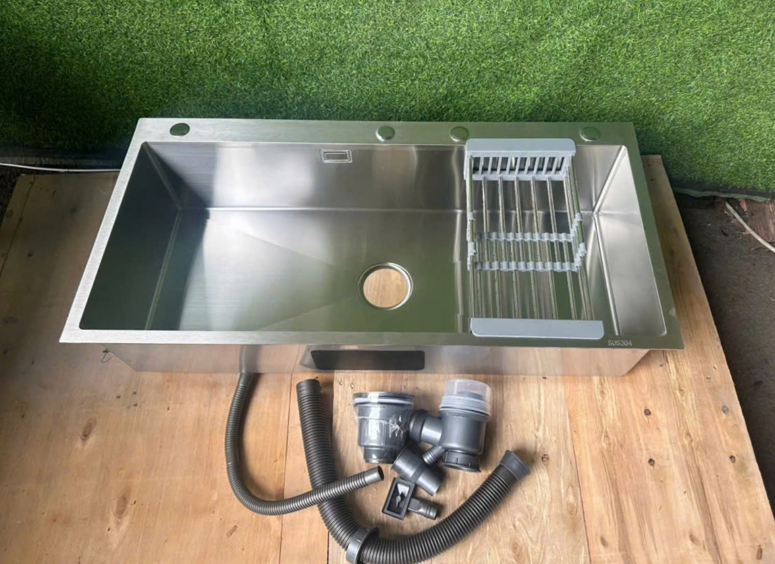 - Phụ kiện đi kèm: Bộ xả chống mùi, rổ lọc rác, thớt, khay để chén bát