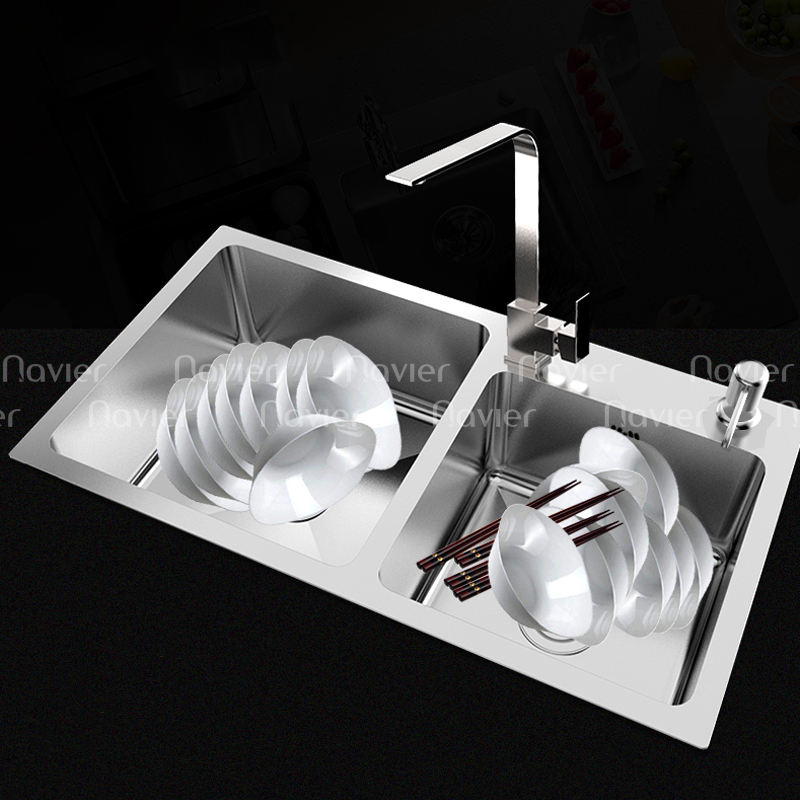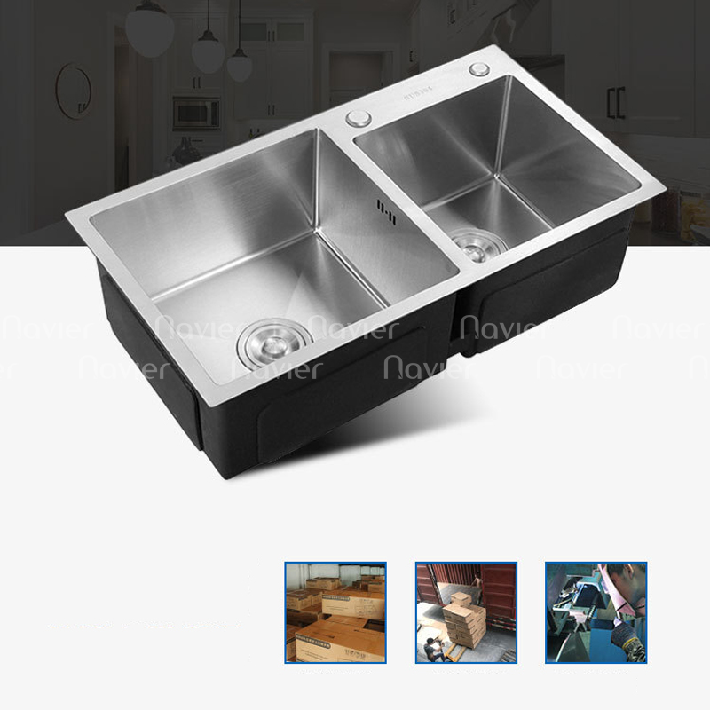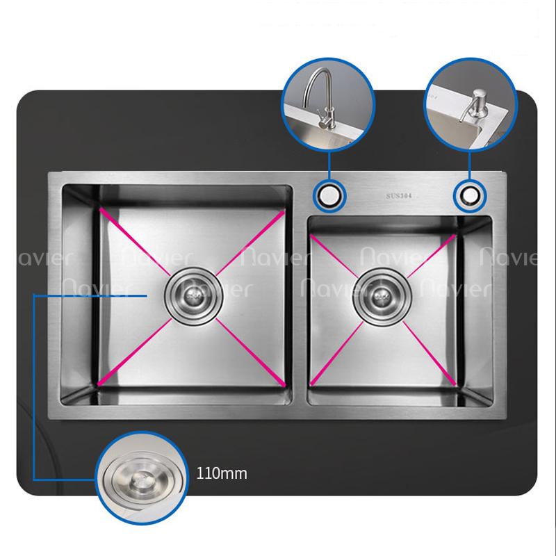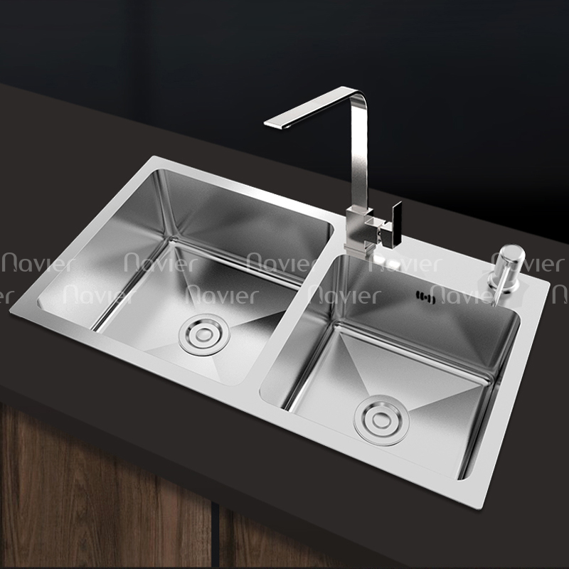 Chậu rửa chén 2 ngăn đều inox304 Navier NV-7843T304