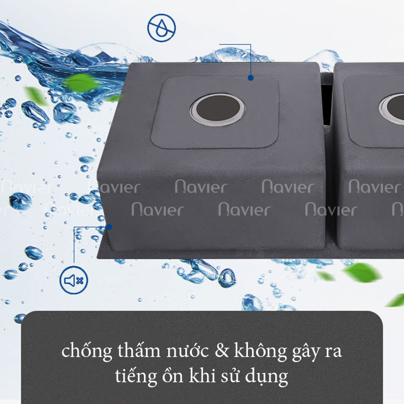 - Chất liệu inox SUS 304 chống gỉ sét,dày 3 ly, bề ngoài chậu được sơn 1 lớp cách ồn màu đen quanh chậu nên khi rửa bán đĩa sẽ không nghe tiếng kêu ổn từ nước xả hay tiếng bát đĩa va vào thành chậu.