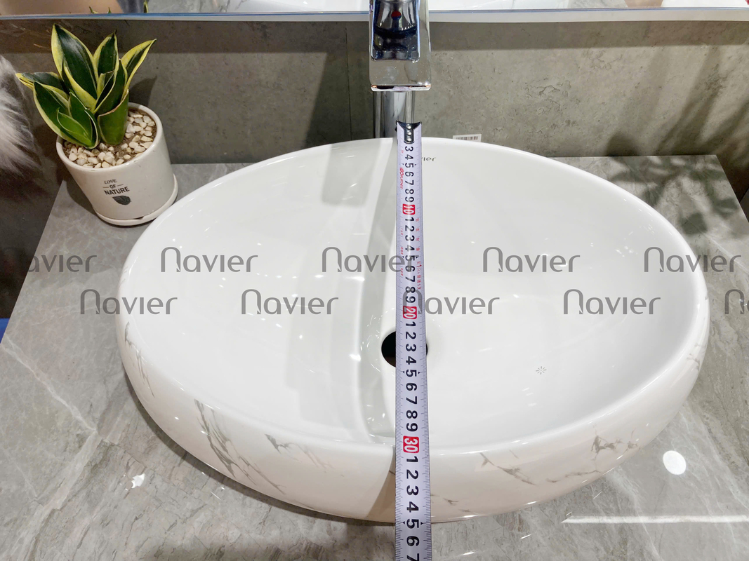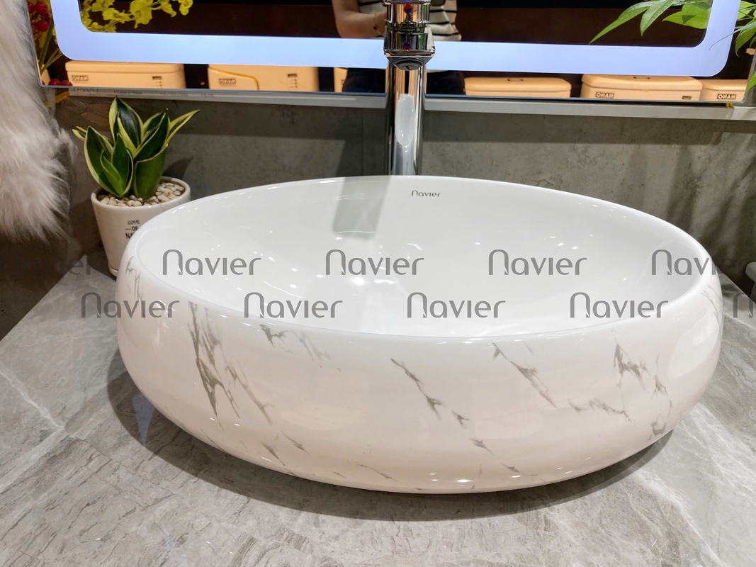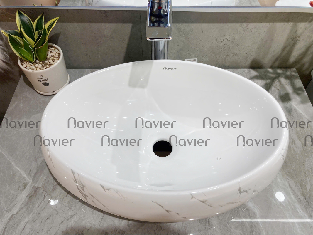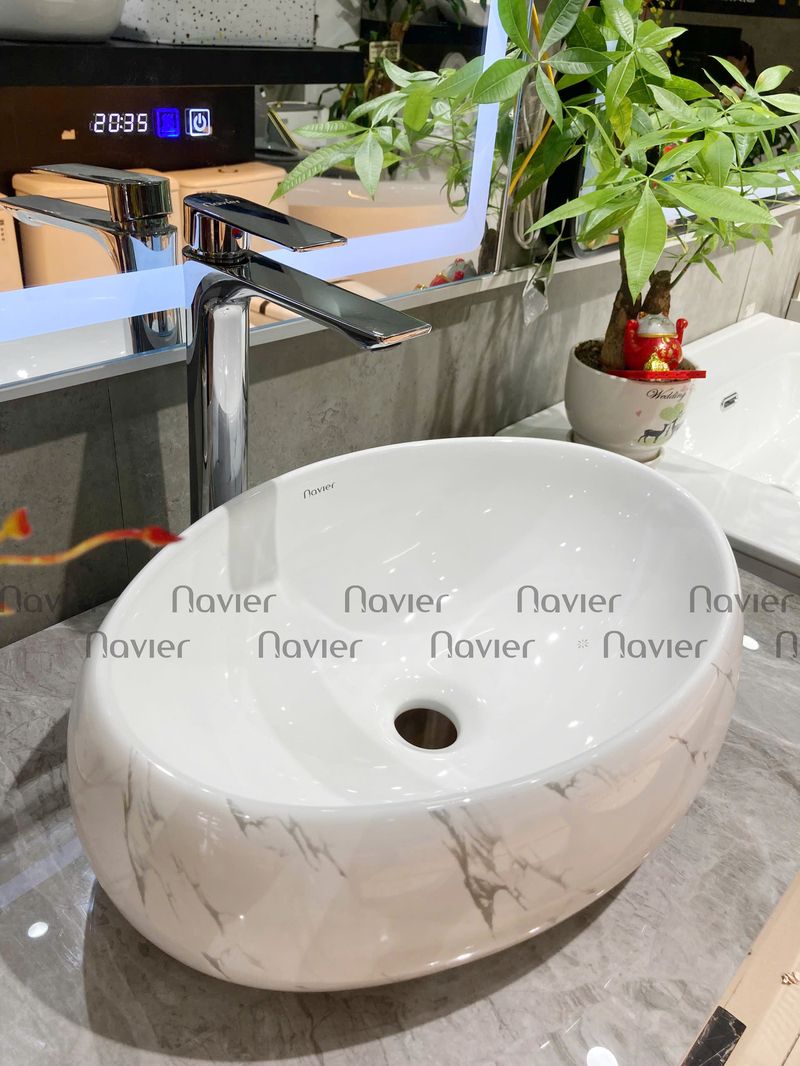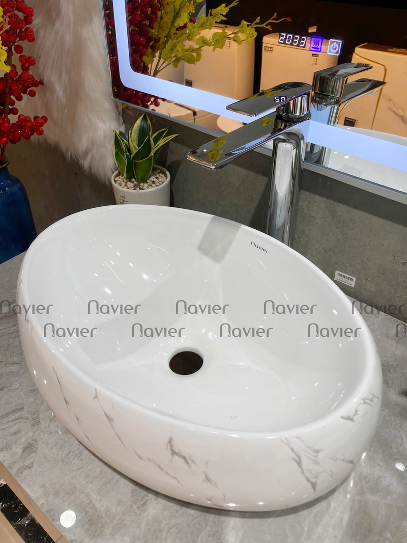 Chậu Lavabo đặt bàn Oval trắng vân mây Navier NV-419VM là một sản phẩm chậu lavabo chất lượng cao của thương hiệu Navier, được làm từ chất liệu gốm sứ được nung nóng ở nhiệt độ cao tạo độ cứng chắc và bền đẹp cho sản phẩm. Bề mặt chậu rửa mặt này được ứng dụng công nghệ tráng men Nano cao cấp giúp bề mặt sáng bóng, chống trầy xước, hạn chế hình thành bụi bẩn và dễ dàng làm sạch, ngăn không cho vi khuẩn tích tụ lâu ngày gây hại sức khỏe người sử dụng.