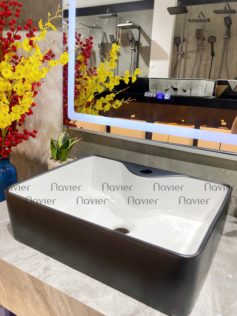 Thiết kế hiện đại và sang trọng: Với màu sắc trắng đen tinh tế và hình dáng chữ nhật đơn giản, chậu lavabo Navier NV-403TD tạo nên sự hiện đại và sang trọng cho không gian phòng tắm.