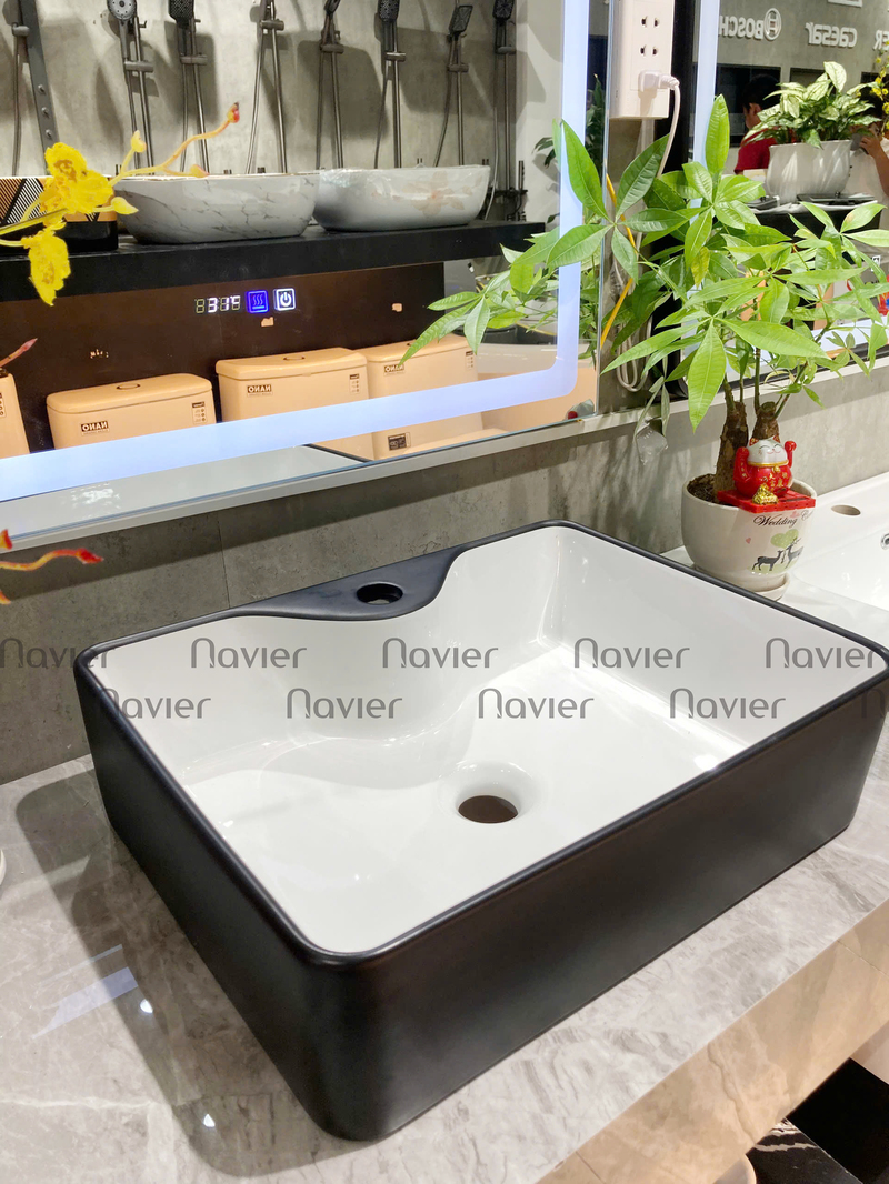 Chậu rửa mặt Đặt Bàn Trắng Đen Tích Hợp Lỗ Vòi Navier NV-403TD