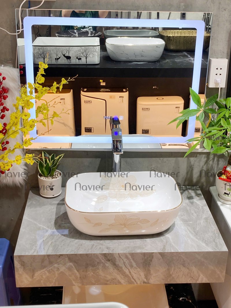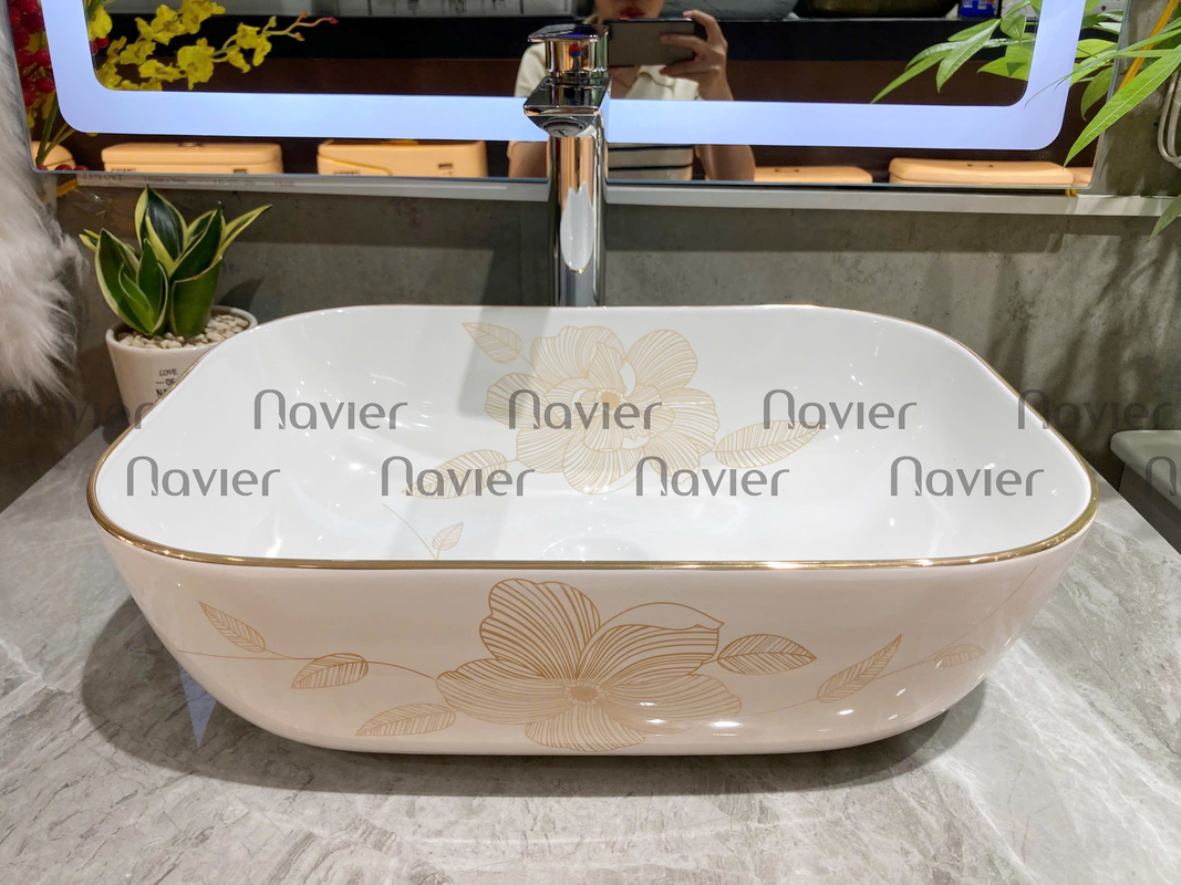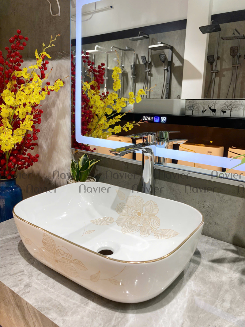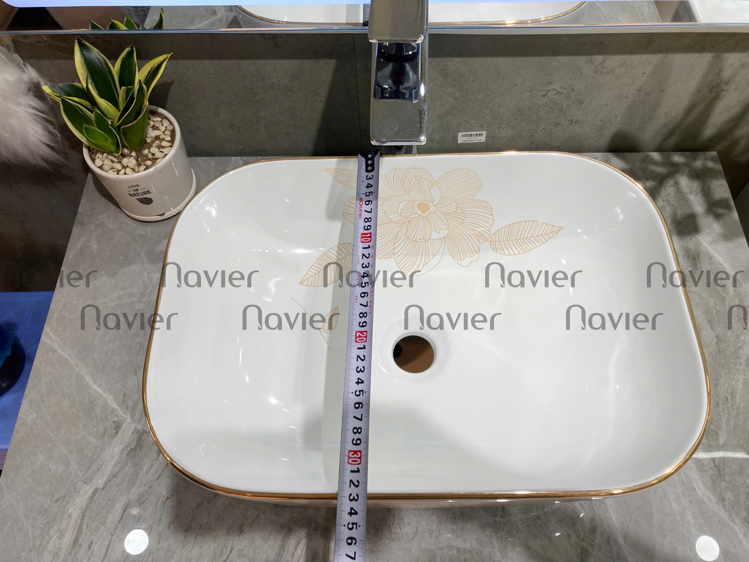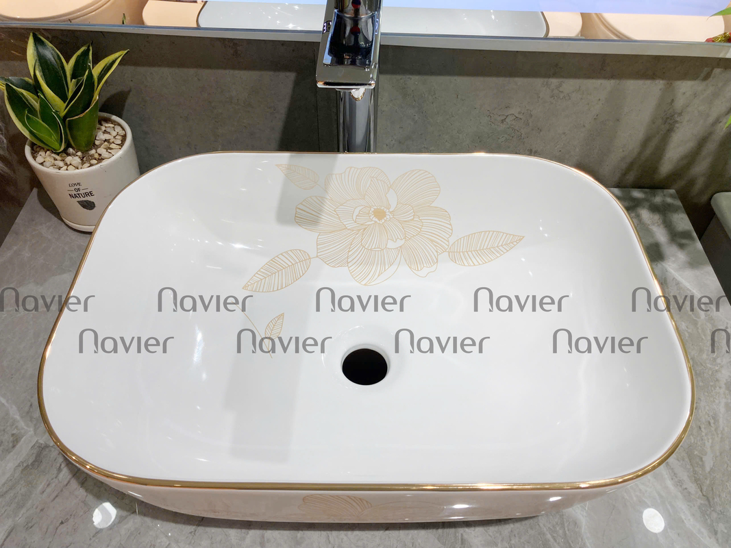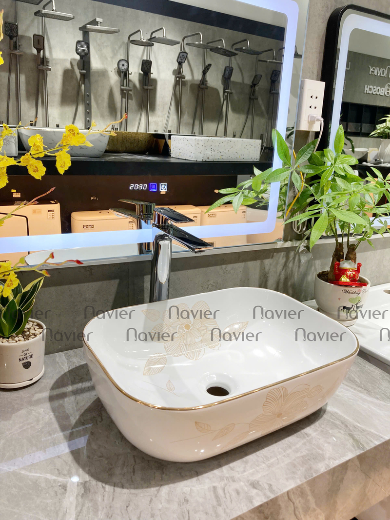 - Dễ dàng lắp đặt: Chậu Lavabo Đặt Bàn Vuông Giác Cạnh Viền Vàng Họa Tiết Hoa Navier NV-435H có thiết kế đơn giản, dễ dàng lắp đặt trên bàn hoặc mặt đá.