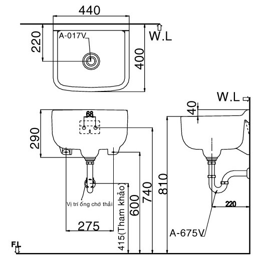 • Sản phẩm đã bao gồm nút chặn nước (A - 017V) và ống thải chữ P (A - 675PV).