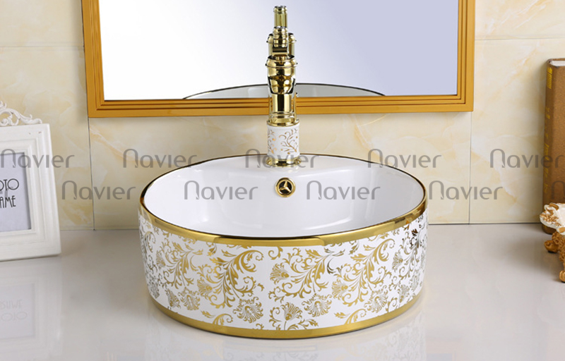 Dòng sản phẩm chậu lavabo tròn đặt bàn hoa văn vàng Navier NV-406 là một sản phẩm cao cấp của thương hiệu Navier, đây là thương hiệu thiết bị vệ sinh có uy tín hàng đầu ở nước ta. Mẫu chậu lavabo đặt bàn phòng tắm này được thiết kế với sự tinh tế và sang trọng khi có họa tiết hoa văn độc đáo, là một trong những dòng sản phẩm không thể bỏ qua trong các căn phòng tắm của các hộ gia đình.