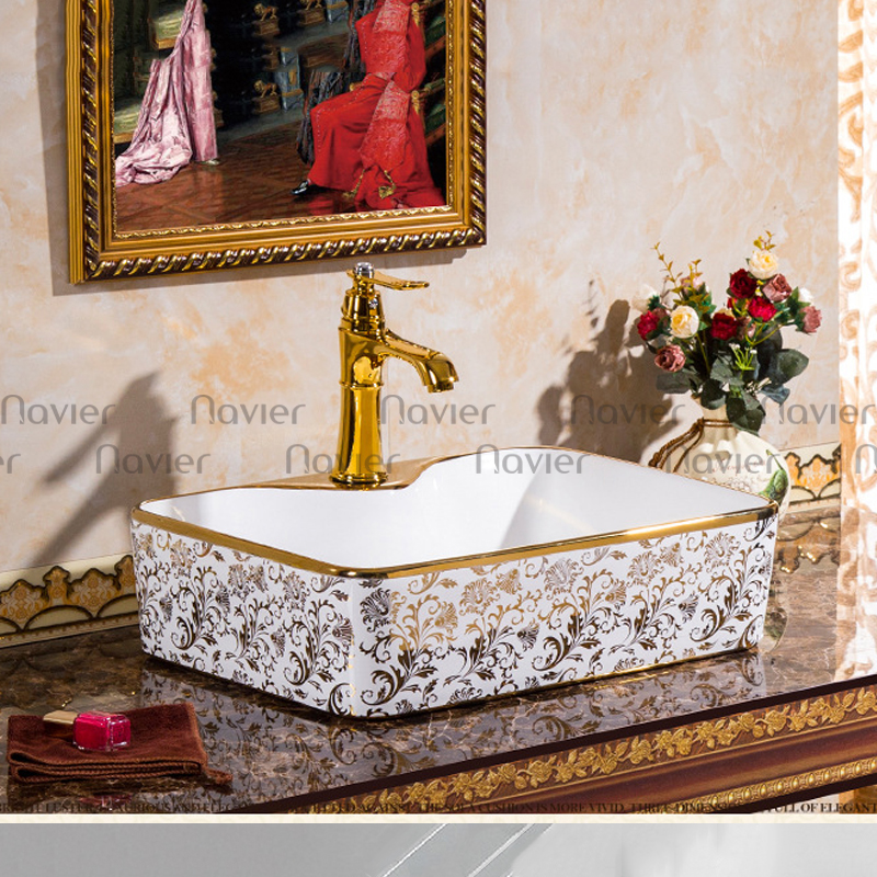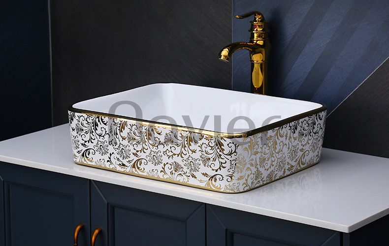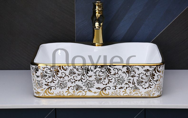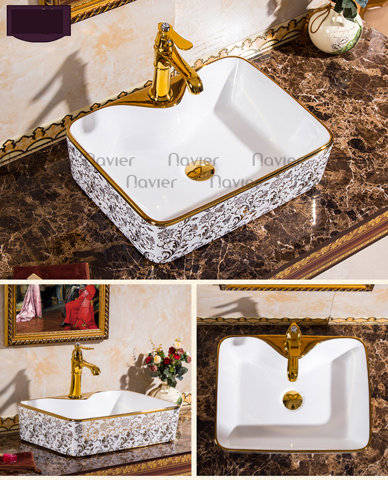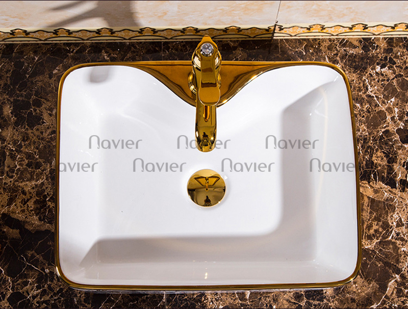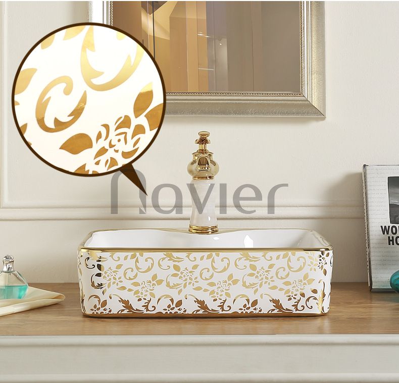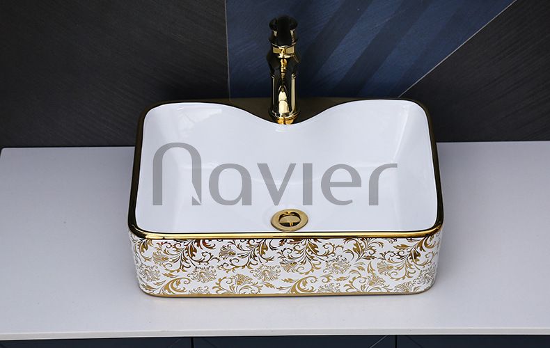 Chậu lavabo vuông đặt bàn hoa văn vàng Navier NV-407 làm từ chất liệu sứ nung ở nhiệt độ cao nên có độ bền rất tốt, có khả năng chống lại được những tác động từ bên ngoài mà không bị biến dạng. Sản phẩm được đánh giá rất cao với họa tiết hoa văn dạng cổ điển độc đáo, nếu được lắp đặt trong các căn phòng tắm phù hợp sẽ giúp căn phòng tắm trở nên nổi bật hơn rất nhiều.