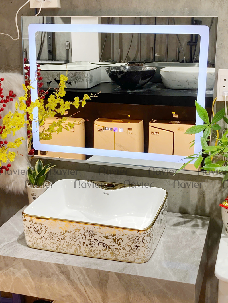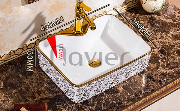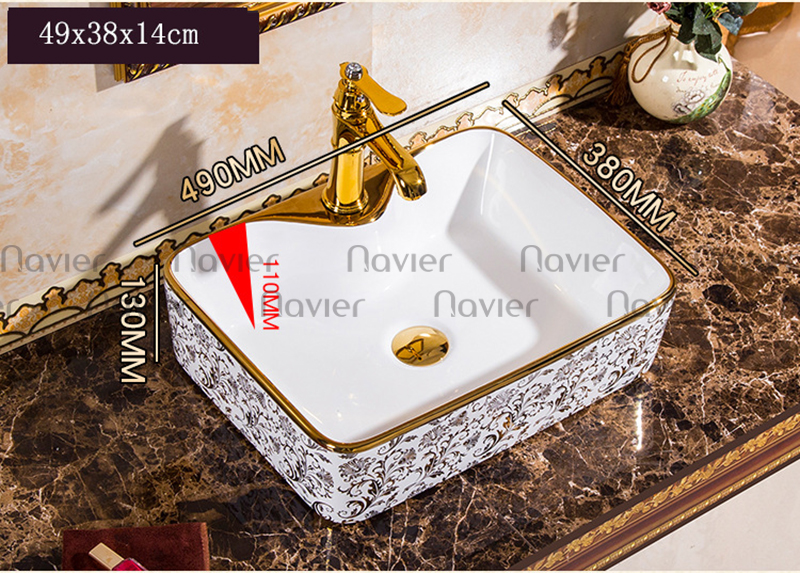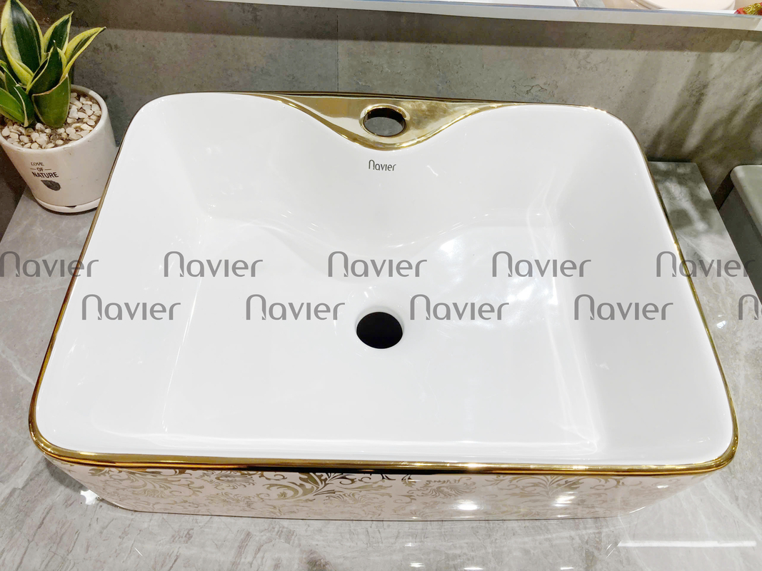 Chậu lavabo vuông đặt bàn hoa văn vàng Navier NV-407 với thiết kế hình chữ nhật đơn giản, chất lượng tốt và đặc biệt là có khả năng chống bám bẩn, chống bắn hiệu quả, có thể đáp ứng được tất cả nhu cầu của khách hàng.