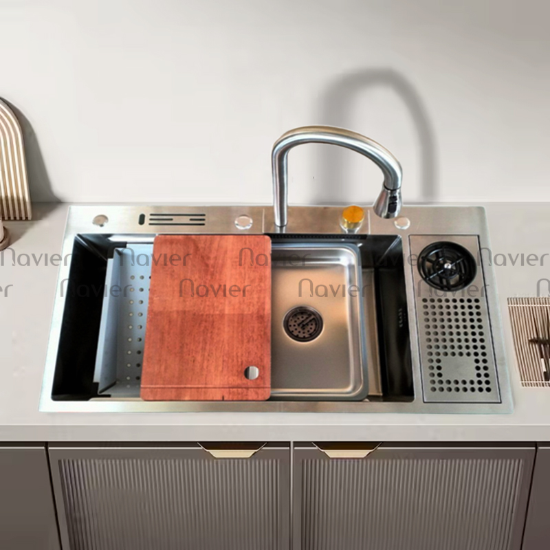 Chậu Rửa Chén 1 Ngăn Tích Hợp Rửa Ly Vắt Dao Navier NV-9048VAD là sự lựa chọn hoàn hảo cho gian bếp của bạn, mang đến sự tiện nghi, sang trọng và bền bỉ theo thời gian.