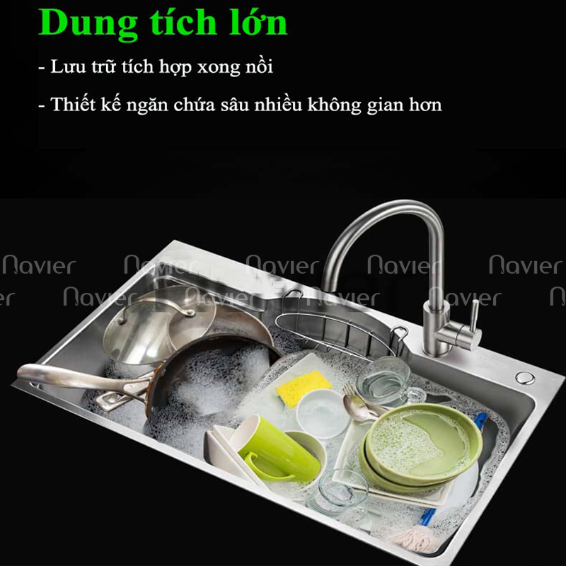 - Thiết kế chậu Navier NV-7546BN304 1 hố rộng