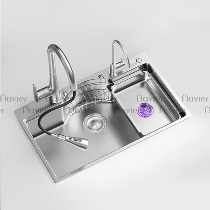 Chậu rửa chén 1 ngăn lớn lõm bán nguyệt inox 304 cao cấp Navier NV-7546BN304