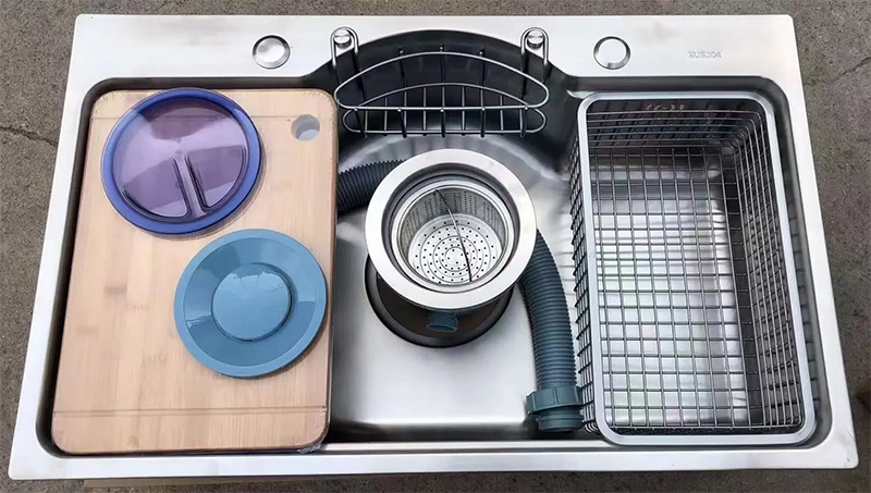 - Có 2 lỗ vòi (vòi rửa bát, vòi lọc) chờ lắp đặt